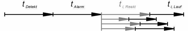 Die Dauer vom Beginn des auslösenden Ereignisses (z.B. Brand) bis zu seiner Entdeckung wird als Detektionsdauer tDetekt bezeichnet.